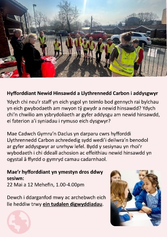 Hyfforddiant Newid Hinsawdd a Llythrennedd Carbon i addysgwyr wneud yn siŵr ein bod yn rhannu’r