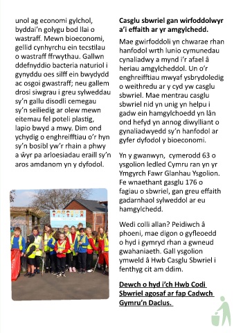 yn cael ei ddiogelu. Mae bio- cyffrous i fod ac yn cynnwys ymweld â Hwb Casglu Sbwriel i
