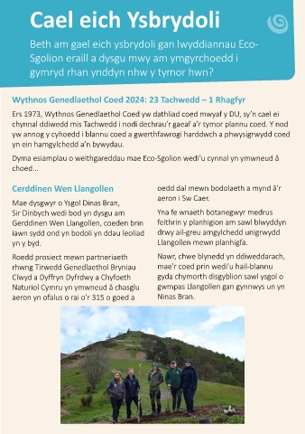 rhwng Tirwedd Genedlaethol Bryniau mae’r coed prin wedi’u hail-blannu