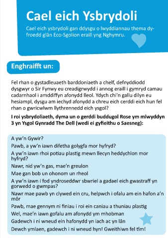 ysbrydoli ar ôl gweld mwy o fagiau plastig na physgod wrth rhan o gwricwlwm llythrennedd eich ysgol?