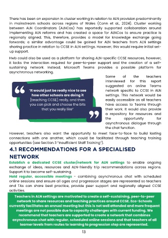 forwards; a similar advantage could be gained for ALN teachers from ALN settings