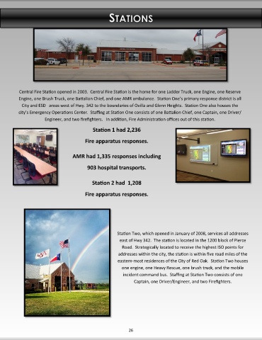 city’s Emergency Operations Center. Staffing at Station One consists of one Battalion Chief, one Captain, one Driver/