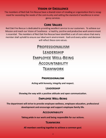 The members of Red Oak Fire Rescue have a shared vision of creating an organization that is recog-
