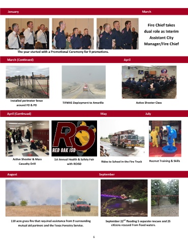 110 acre grass fire that required assistance from 9 surrounding September 22 flooding 5 separate rescues and 25