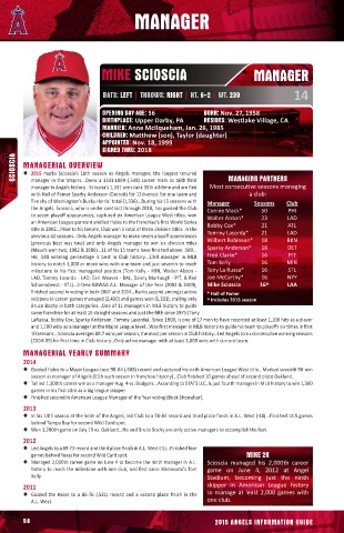 ◆ ◆ 2015 marks Scioscia’s 16th season as Angels manager, the longest tenured