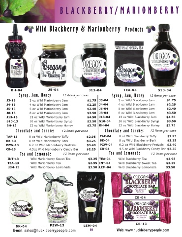 S10-13 10 oz Wild Marionberry Syrup $3.50 S10-04 10 oz Wild Blackberry Syrup $3.50