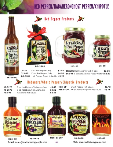J8-0678 8 oz Raspberry/Habanero Jam $3.50 HS5-01CHP Huckleberry Chipotle Hot Sauce $3.25