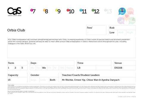 Maths extension club, led by students. Aim to prepare for Maths competitions. KGV Orbis Ambassadors will continue strengthening partnerships with Orbis, increasing awareness of Orbis’s work of eyecare health and blindness prevention
