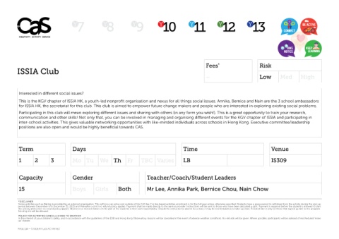 for ISSIA HK, the secretariat for this club. This club is aimed to empower future change makers and people who are interested in exploring existing social problems.