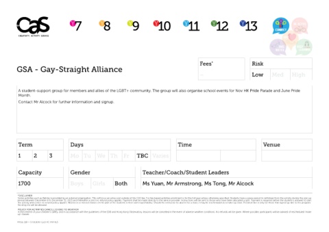 A student-support group for members and allies of the LGBT+ community. The group will also organise school events for Nov HK Pride Parade and June Pride Student will come to us with any help they would need in computer science lessons they have at school. During times of less need, advanced teaching will be done