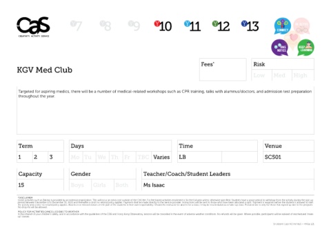 Some activities such as Baking is provided by an external organization. This will incur an extra cost outside of the CAS fee. For fee-based activities enrolment is for the full year unless otherwise specified. Students have a grace period to withdraw from the activity during the sign up Some activities such as Baking is provided by an external organization. This will incur an extra cost outside of the CAS fee. For fee-based activities enrolment is for the full year unless otherwise specified. Students have a grace period to withdraw from the activity during the sign up