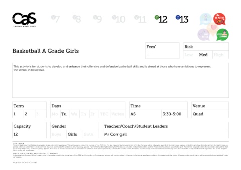 This activity is for students to develop and enhance their offensive and defensive basketball skills and is aimed at those who have ambitions to represent