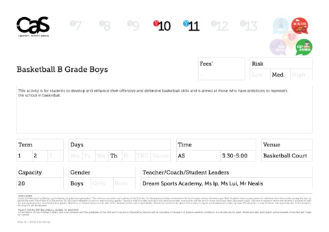 Some activities such as Baking is provided by an external organization. This will incur an extra cost outside of the CAS fee. For fee-based activities enrolment is for the full year unless otherwise specified. Students have a grace period to withdraw from the activity during the sign up Some activities such as Baking is provided by an external organization. This will incur an extra cost outside of the CAS fee. For fee-based activities enrolment is for the full year unless otherwise specified. Students have a grace period to withdraw from the activity during the sign up