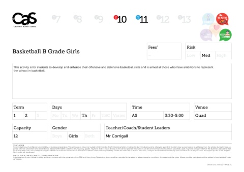 Some activities such as Baking is provided by an external organization. This will incur an extra cost outside of the CAS fee. For fee-based activities enrolment is for the full year unless otherwise specified. Students have a grace period to withdraw from the activity during the sign up Some activities such as Baking is provided by an external organization. This will incur an extra cost outside of the CAS fee. For fee-based activities enrolment is for the full year unless otherwise specified. Students have a grace period to withdraw from the activity during the sign up