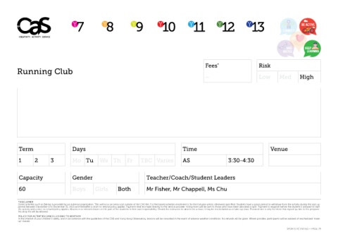 Some activities such as Baking is provided by an external organization. This will incur an extra cost outside of the CAS fee. For fee-based activities enrolment is for the full year unless otherwise specified. Students have a grace period to withdraw from the activity during the sign up Some activities such as Baking is provided by an external organization. This will incur an extra cost outside of the CAS fee. For fee-based activities enrolment is for the full year unless otherwise specified. Students have a grace period to withdraw from the activity during the sign up