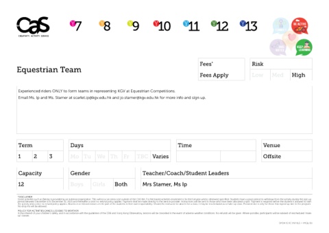 Friday after school Experienced riders ONLY to form teams in representing KGV at Equestrian Competitions.