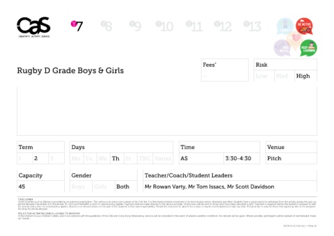 Some activities such as Baking is provided by an external organization. This will incur an extra cost outside of the CAS fee. For fee-based activities enrolment is for the full year unless otherwise specified. Students have a grace period to withdraw from the activity during the sign up Some activities such as Baking is provided by an external organization. This will incur an extra cost outside of the CAS fee. For fee-based activities enrolment is for the full year unless otherwise specified. Students have a grace period to withdraw from the activity during the sign up