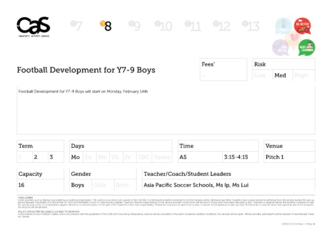 16 Boys XGirls XBoth Mr Corrigall, Ms Ip, Ms Lui 16 Boys XGirls XBoth Asia Pacific Soccer Schools, Ms Ip, Ms Lui