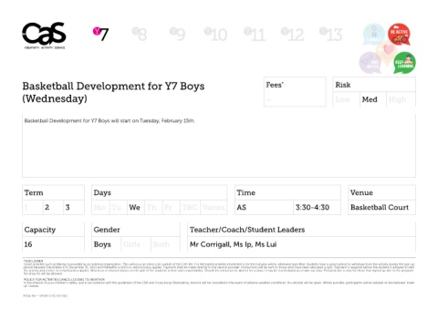 16 Boys XGirls XBoth Mr Corrigall, Ms Ip, Ms Lui 25 Boys XGirls XBoth Mr Bell