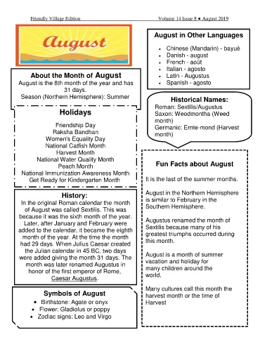 Friendly Village Edition Volume 14 Issue 8 ● August 2019