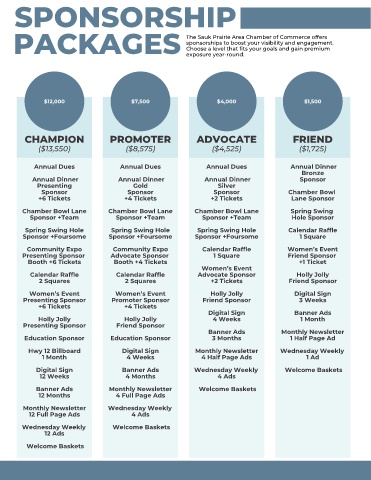 PACKAGES The Sauk Prairie Area Chamber of Commerce offers