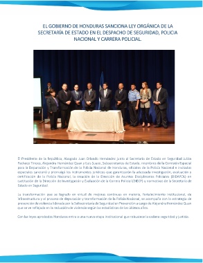 EL GOBIERNO DE HONDURAS SANCIONA LEY ORGÁNICA DE LA