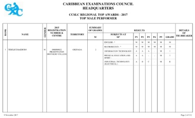 RANK NAME GENDER REGISTRATION TERRITORY OF GRADES SUBJECTS AT RESULTS P3 P4 P5 GRADE TIE-BREAKER