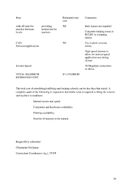 The total cost of retrofitting/outfitting and training schools can be less than that stated. A