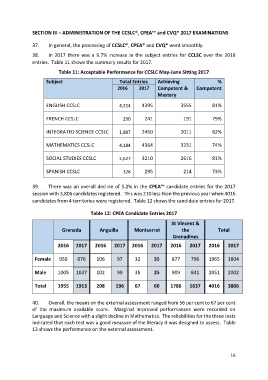 Table 11: Acceptable Performance for CCSLC May-June Sitting 2017