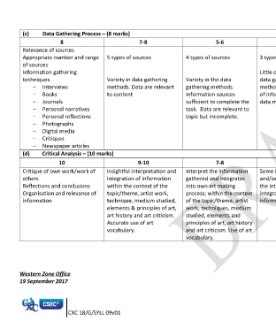 Organisation and relevance of topic/theme, artist work, process; within the context integration of integration of integration of information.