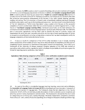 17. It was as a result of a comparison of the CEFR to other standards in use in Canada, including