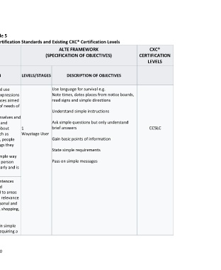 Equivalence Table showing comparison of International Certification Standards and Existing CXC® Certification Levels