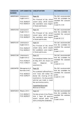 CANDIDATE CAPE SUBJECT(S) CASE/SITUATION RECOMMENDATION