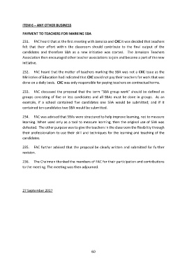 232. FAC heard that the matter of teachers marking the SBA was not a CXC issue as the