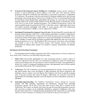 II. Conferences. The CXC Conferences will provide opportunities for teachers, ministry technocrats