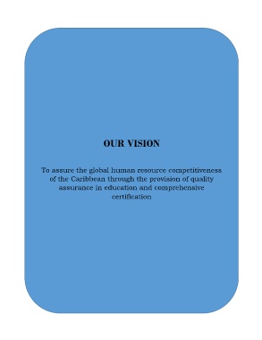 OUR VISION To assure the global human resource competitiveness of the Caribbean through the provision of quality assurance in education and comprehensive certification