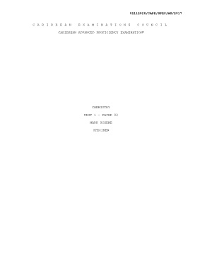 02112020/CAPE/SPEC/MS/2017 CARI BBEA N EX AMIN ATIONS C OUNC IL ® CARIBBEAN ADVANCED PROFICIENCY EXAMINATION CHEMISTRY UNIT 1 — PAPER 02 MARK SCHEME SPECIMEN