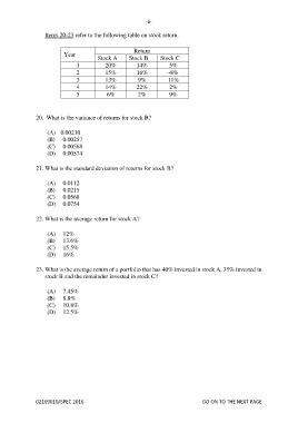23. What is the average return of a portfolio that has 40% invested in stock A, 35% invested in
