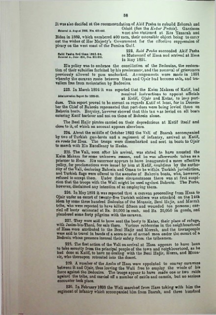 223. In March 1892 it was reported that the Kaim Makam of Katif, had