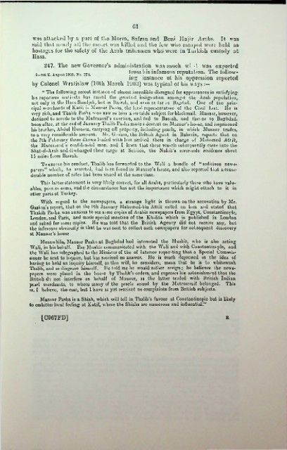 Meanwhile, Mansur Pasha at Baghdad had interested the Mushir, who is also acting