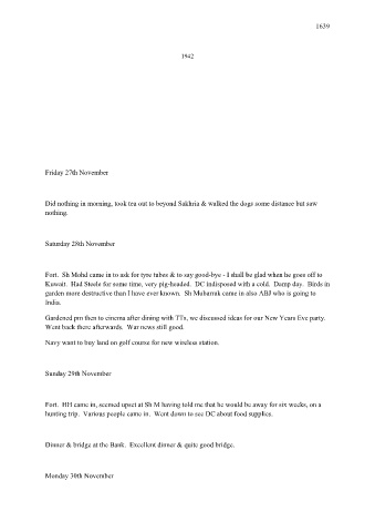 hunting trip. Various people came in. Went down to see DC about food supplies.
