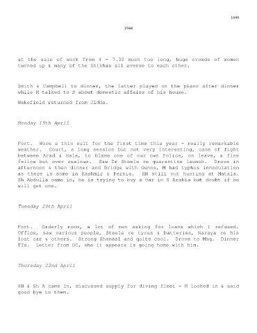 Fort. Orderly room, a lot of men asking for loans which I refused.