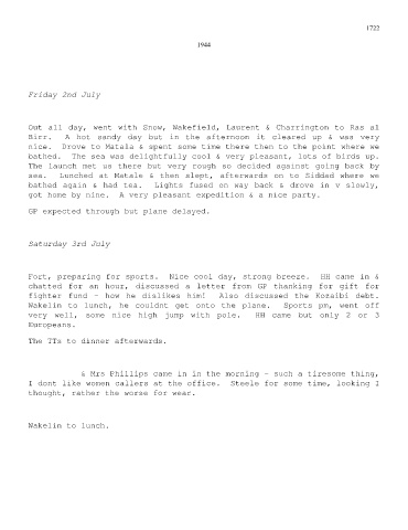 Wakelin to lunch, he couldnt get onto the plane. Sports pm, went off