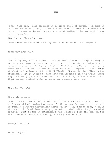 Fort. Cool day. Good progress in clearing the Fort garden. HH came in