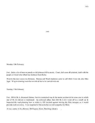 one of Sh A's drivers is mentioned. An awkward affair, then HH Sh A & I went off in a small car &