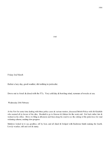 Drove out to Awali & dined with the TTs. Very cold day & howling wind, rumours of wrecks at sea.