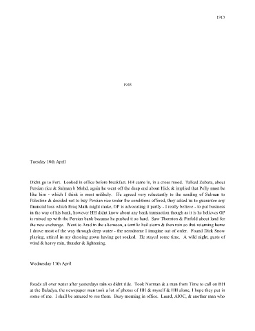 is mixed up with the Persian bank because he pushed it so hard. Saw Thornton & Pinfold about land for