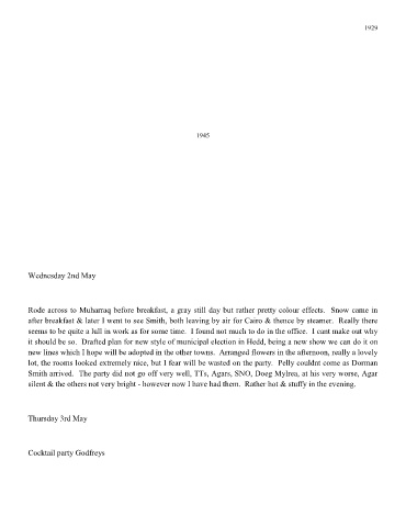 after breakfast & later I went to see Smith, both leaving by air for Cairo & thence by steamer. Really there