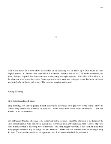 English tourist. Y. Fakroo about case with Kh b Sulman. Went to see off the TTs on the aerodrome, sea