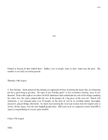V. Day Holiday. Spent almost all day turning out cupboards & boxes & putting the house tidy, an exhausting